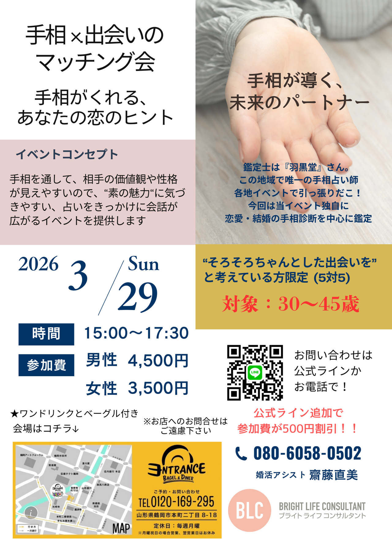 | 近日 | 運命は手のひらに♡手相占い×婚活イベント |